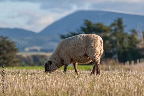 © Mister Dreamer, Obraz premium One grazing sheep in a meadow