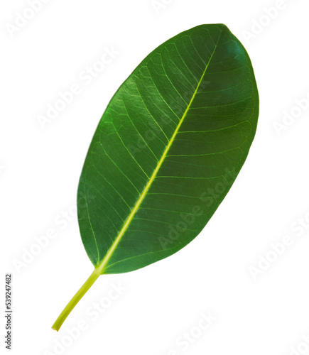 © Svetlana , Fototapeta premium One green ficus leaf isolated on white background