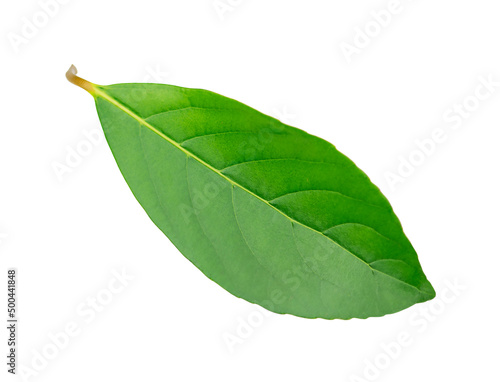 Obraz premium One green leaf isolated on white background.