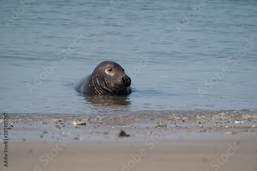 © Dasya - Dasya, Fototapeta premium One Grey Seal, Halichoerus grypus. Swimming in the sea with head above water