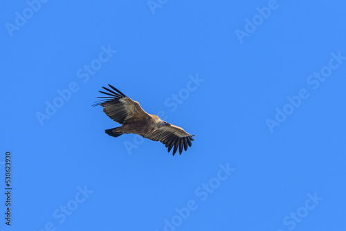 © Stefan, Obraz premium One griffon vulture flying in front of blue sky