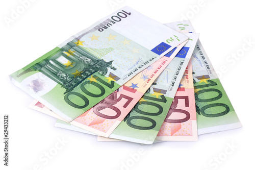 © AD, Obraz premium One Hundred and Fifty Euro Banknotes Isolated with Clipping Path