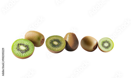 © lway, Obraz premium One kiwi and half a kiwi, isolated on a white background.