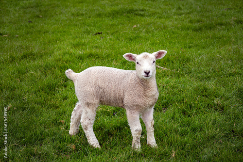 © veronique, Fototapeta premium One lamb in a field in spring, close up
