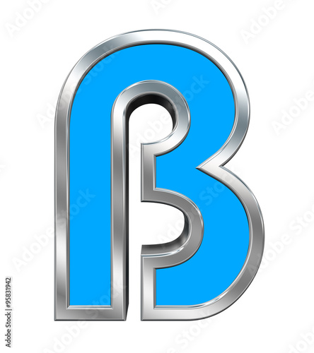 © Piotr Pawinski, Fototapeta premium One letter from light blue with chrome frame alphabet set, isolated on white. Computer generated 3D photo rendering.