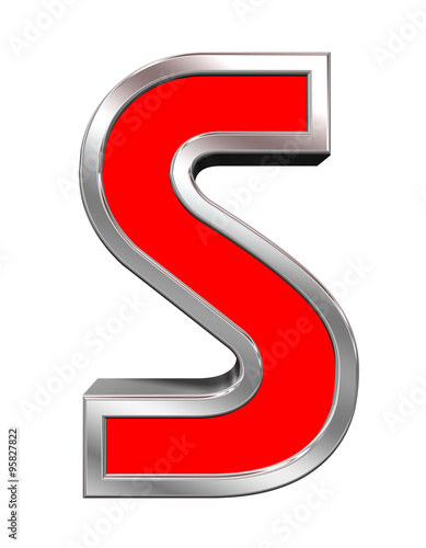 Fototapeta premium One letter from red with chrome frame alphabet set, isolated on white....
