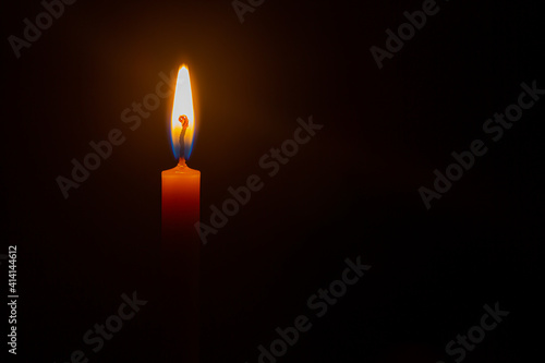 © banjongseal324, Fototapeta premium One light candle burning brightly in the black background