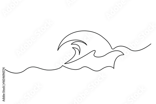© MdOmar, Fototapeta premium One line drawing of ocean wave minimalist sea outline vector art illustration