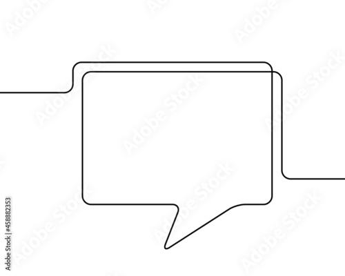 © art_of_line, Naklejka premium One line drawing of speech bubble, Black and white vector minimalistic linear shape made of continuous line rectangular with round corners