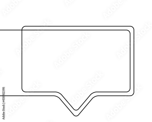 © art_of_line, Naklejka premium One line drawing of speech bubble, Black and white vector minimalistic linear shape made of continuous line rectangular with round corners