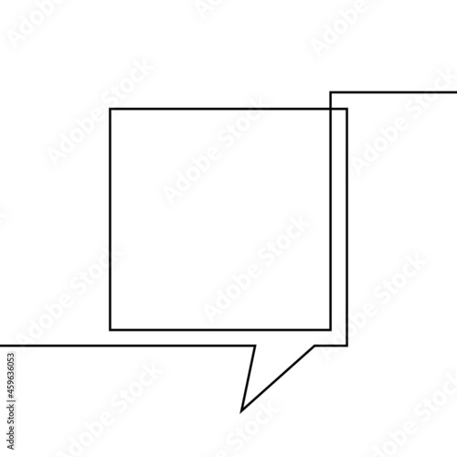 © art_of_line, Obraz premium One line drawing of square speech bubble, Black and white vector minimalistic linear illustration made of continuous line