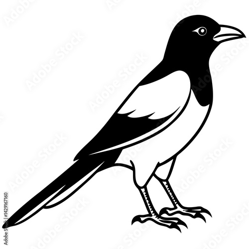 © Designer Ayub, Obraz premium One-Line Magpie Vector Sketch