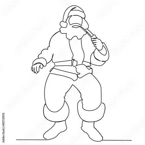 Fototapeta premium one line, one, continuous, holiday, vector, illustration, christmas, santa, cartoon, merry, hat, celebration, winter, design, greeting, claus, new, xmas, year, character, decoration, element, card, ic