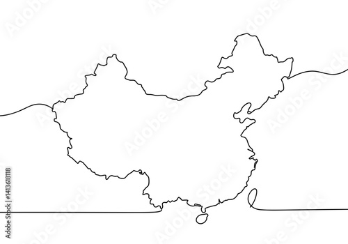 Obraz premium One line vector outline of China map. Minimalistic continuous line drawing,...