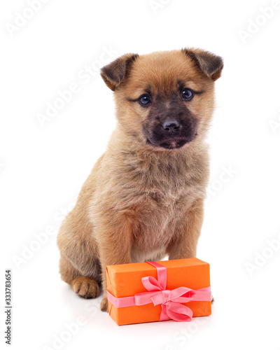 © ANASTASIIA, Obraz premium One little dog with a gift.