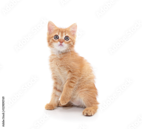 © ANASTASIIA, Obraz premium One little red kitten sitting.