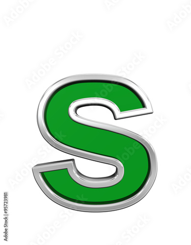 © Piotr Pawinski, Naklejka premium One lower case letter from green glass with chrome frame alphabet set, isolated on white. Computer generated 3D photo rendering.
