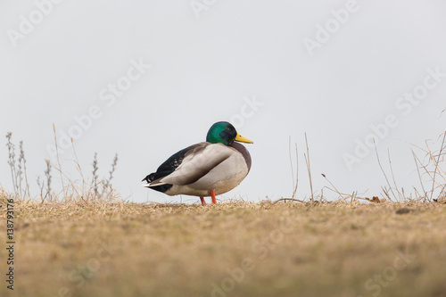Obraz premium one male mallard (Anas platyrhynchos) standing in meadow