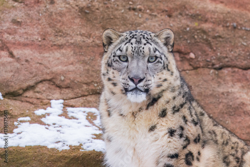 Naklejka premium One of most beautiful big cat, snow leopard - Irbis, Uncia uncia, Close up portrait,