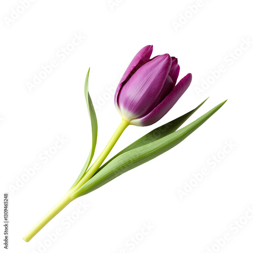 © Marina, Fototapeta premium one purple tulip on a long stem with green petals in png format.