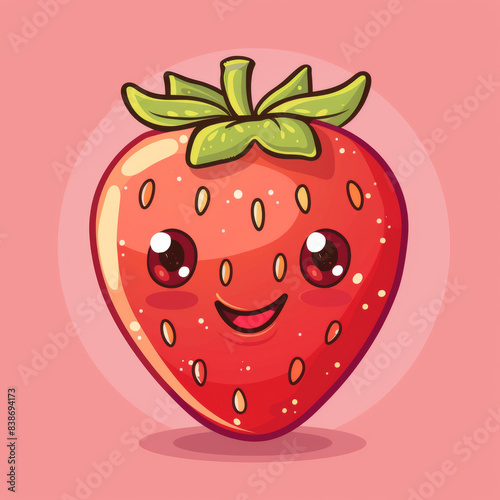 © Pan_Lluvia, Obraz premium One red strawberry isolated on pink background, PNG file. Cartoon image, cute.