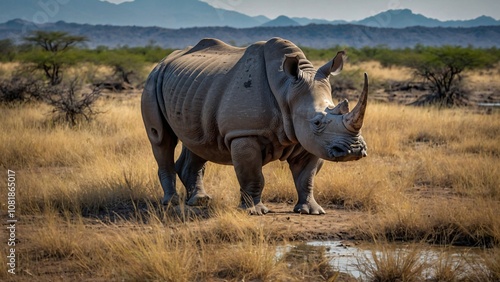 Obraz premium one rhinoceros on the grassland on a sunny day