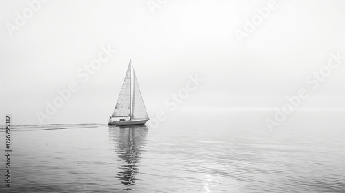 © Ice Cream Paradise, Fototapeta premium One sea photo, white monochrome photo, all in a white color scheme, misty white color palette