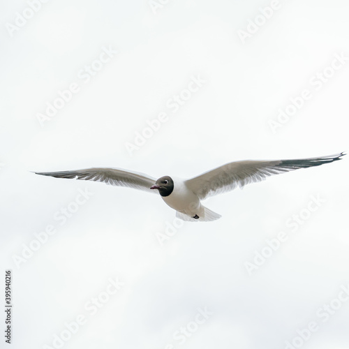 Fototapeta premium One seagull flies beautifully, spreading its wings
