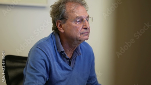 © Marco, Fototapeta premium One senior business man working in front of computer screen. Older mature entrepreneur reading content online