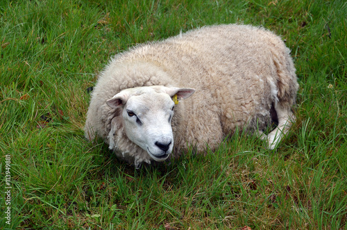 Obraz premium one sheep lying on the grass photography