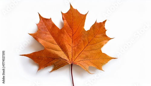 Obraz premium One Single Orange Autumn Fall Maple Leaf Isolated On White Background