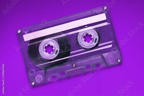 Obraz premium One single simple light analog audio cassette tape object. Retrowave,...