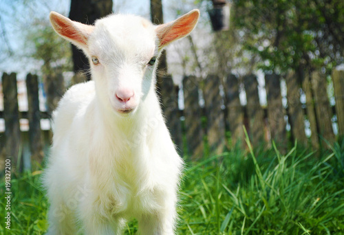 Fototapeta premium One small white young goat