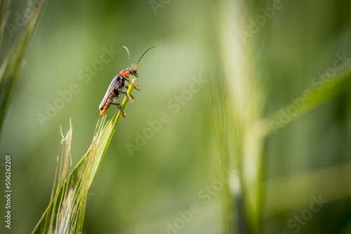 © karegg, Fototapeta premium one soft beetle sits on an ear of grain
