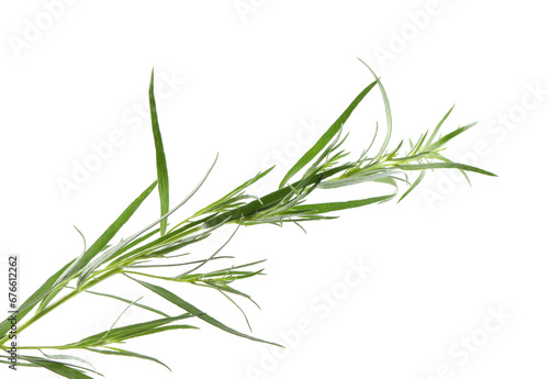 © New Africa, Fototapeta premium One sprig of fresh tarragon on white background