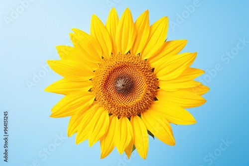 © DenisNata, Naklejka premium One Sunflower flower isolated on blue background, top view. Floral flowers pattern.