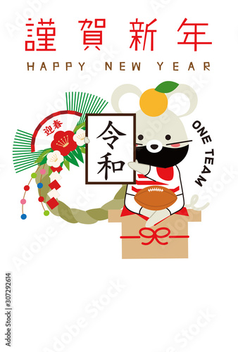 Fototapeta premium 年賀状 ラガーマンが令和発表 one team