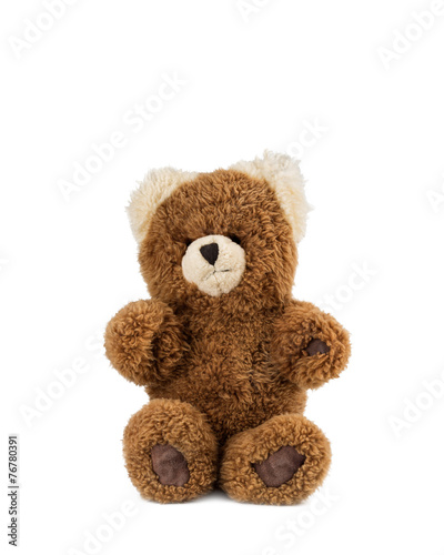 Obraz premium One teddy bear sitting, on white background.
