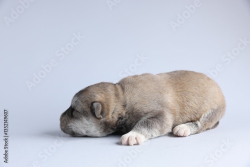 Obraz premium One tiny puppy sleeping on white background