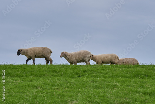 © A, Obraz premium One two three four sheeps on the dike