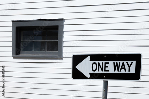 © Philip, Naklejka premium One way sign in front of a wooden house in New Orleans USA