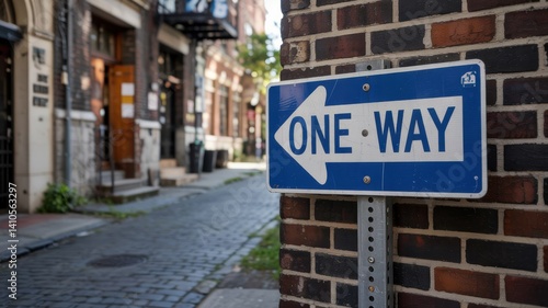 © Jaemie, Fototapeta premium One Way Street Sign in Historic Urban Alleyway