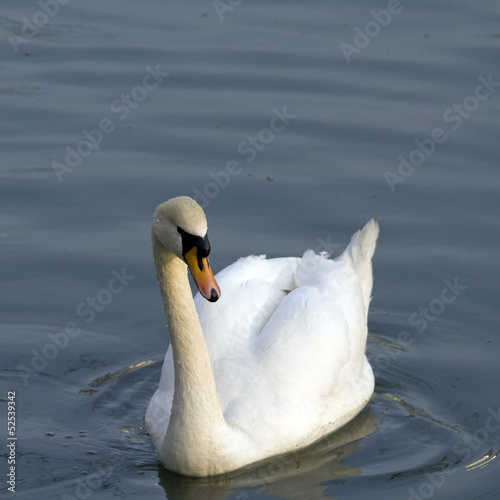 Obraz premium One white swan swimming in the lake water