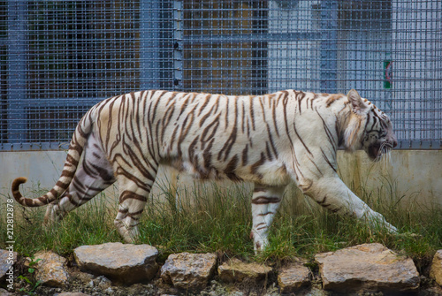 © Zsolt Biczó, Fototapeta premium One white tiger walk outdoor