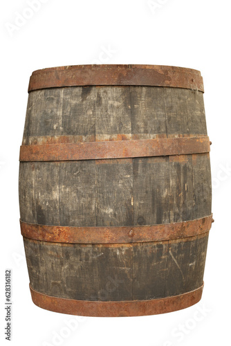 Obraz premium One wooden barrel with metal hoops isolated on white