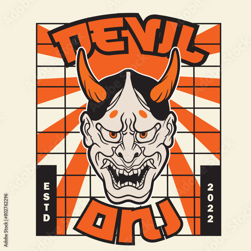 © Nehemialeo, Fototapeta premium Oni japanese devil mask, Vector illustration
