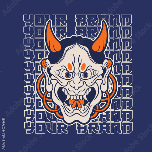 © Nehemialeo, Fototapeta premium Oni japanese devil mask, Vector illustration