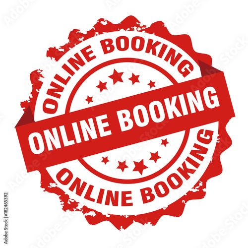 © Cristina Dumitru, Obraz premium Online booking red text on round stamp