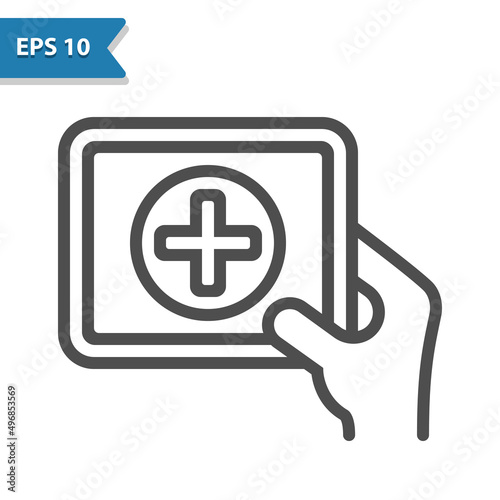 Fototapeta premium Online Healthcare Icon - Digital Health Care, Hand, Tablet