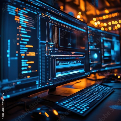 Obraz premium Online learning for creative professionals using software tools (close up, software theme, dynamic, Multilayer, editing interface backdrop)